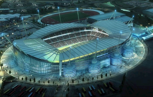 - Cấu trúc : Được thiết kế theo hình elip liên tục với ba tầng ghế ngồi ở hai bên và hai tầng ở hai đầu, sân vận động có kích thước 105m x 68m, cao 105m x 68m, được làm bằng vật liệu Desso GrassMaster (hỗn hợp cỏ tự nhiên và sợi tổng hợp). Mái vòm hình xuyến được đỡ bởi 12 tháp dây văng cao tới 70m, với các sợi polycarbonate trong suốt để chiếu sáng và thông gió. Sân vận động có 70 phòng VIP, sáu nhà hàng, không gian hội nghị, phòng truyền thông và hệ thống chiếu sáng công suất 436.000 watt. Sân vận động đã được trao giải UEFA Hạng 1 và Giải thưởng Thiết kế Toàn diện RIBA năm 2004. Sân vận động có bốn khán đài: Khán đài Bắc (Bắc, Mở rộng), Khán đài Nam (Nam, Sân nhà), Khán đài Đông (Colin Bell, Đông) và Khán đài Tây (Etihad, Tây).